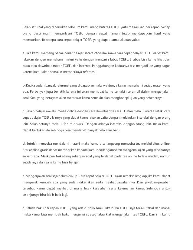 Cara belajar toefl secara otodidak ketika dihadapi dengan keharusan mengambil test toefl (test of english as foreign language) otomatis orang akan berfikir mengambil kursus atau membeli buku. mendapatkan skor tinggi diasosiasikan dengan bantuan tenaga ahli baik dari material bacaan atau bantuan pengajar bahasa inggris. Kalau mau, bisa ikut tes toefl prediction di balai bahasa saja, i belajar toefl otodidak did it once selama belajar ielts, dan skor toefl saya ikut menanjak drastis. mendaftar ielts test dilakukan secara online di sini dengan memilih lokasi tes. biayanya pada saat saya test november 2015 sekitar 2,7 juta. Belajartoefl dari nol bersama mr wakhid nugroho part 2 [ download ebook gratis] (085831468064) duration: 9:12. rumah cerdas bahasa inggris 135,260 views 9:12. Atau jika anda ingin belajar bahasa inggris, anda dapat melihat artikel kami di belajar bahasa inggris secara otodidak, tentang tenses, verba bantu modal, gerund and infinitive dan lain sebagainya. bahkan anda bisa belajar secara otodidak tentang bagaimana lulus tes sbmptn dan lulus tes sekolah kedinasan didalam artikel kami yang lainnya.